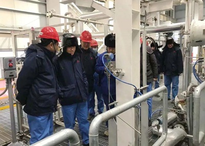 許緘濤首先來到甲醇聯合裝置施工現場進行了視察。先后到甲醇合成精餾、氣化、灰水處理、變換、低溫甲醇洗等單元進行了查看,聽取了相關負責人項目情況介紹,并對項目試車運行、技術保障等情況進行了詳細詢問。許緘濤對項目組工作表示肯定,并強調要全力做好現場防凍防凝工作,針對冬季帶來的不利因素,要進一步強化現場管理,嚴格執(zhí)行施工程序和標準,細化工作方案,在確保安全質量受控的前提下,為業(yè)主投料開車做好保駕護航工作。