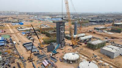 值得一提的是,項目核心乙醇裝置長周期設備陸續(xù)交貨到場安裝就位;土建施工總體完成73%,主要建筑物開始裝修,落地設備基礎交付安裝,壓縮機廠房及其基礎施工正在按計劃進行;裝置安裝工作全面推進,7臺反應器全部安裝完成,核心塔器正進行現(xiàn)場安裝攻堅。與此同時,熱動力站也在快馬加鞭的進行,目前鍋爐汽輪機房主體結(jié)構(gòu)施工和裝修正已同步啟動,1號鍋爐鋼結(jié)構(gòu)安裝完成,鍋爐及附件基本安裝完畢;2號、3號鍋爐正進行鍋爐鋼結(jié)構(gòu)安裝,全力為今年11月鍋爐點火做好準備。