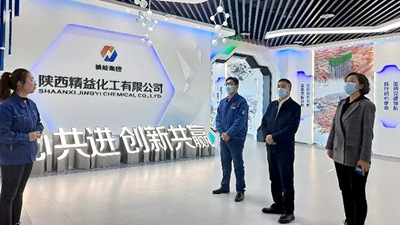 許緘濤一行首先來到陜西精益化工有限公司展覽室進(jìn)行參觀,通過講解員的講解,就企業(yè)的發(fā)展歷程、一期建設(shè)50萬噸/年煤焦油深加工多聯(lián)產(chǎn)綜合利用項(xiàng)目及2×40.5MVA硅鐵礦熱爐綜合利用項(xiàng)目等進(jìn)行了了解。