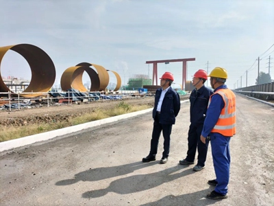 曹堅先后來到碳鑫乙醇項(xiàng)目建設(shè)現(xiàn)場及陜西化建設(shè)備制造公司的超限塔器現(xiàn)場設(shè)備制造廠進(jìn)行了視察,重點(diǎn)檢查了工程進(jìn)度、安全生產(chǎn)、技術(shù)管控、環(huán)境保護(hù)、疫情防控等情況,對本項(xiàng)目目前的"穩(wěn)增長、抗疫情、保安全"的工作表示肯定。
