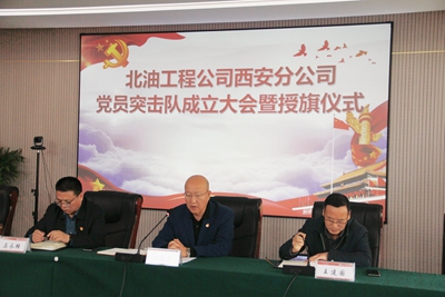 近日,北京石油化工工程有限公司西安分公司黨總支舉辦了黨員突擊隊成立大會暨授旗儀式,會上由西安分公司黨總支書記、經(jīng)理段文杰宣布成立土建室黨員突擊隊以及配管室黨員突擊隊,并授予他們黨員先鋒突擊隊旗幟。