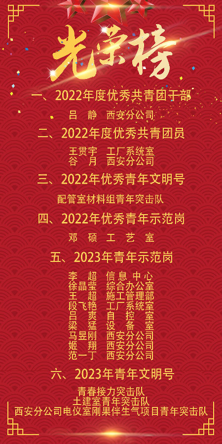 會上,張娜宣讀了表彰決定,大會對評選出的2022年度優(yōu)秀共青團(tuán)干部、優(yōu)秀團(tuán)員,以及 2022年優(yōu)秀青年示范崗、青年文明號進(jìn)行了表彰,并對2023年度青年示范崗、青年文明號進(jìn)行掛牌。