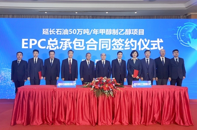 許緘濤在致辭中表示,凱越煤化50萬噸/年甲醇制乙醇項目是繼興化、榆神乙醇項目之后,北油工程與延長集團在乙醇領域的又一次友好合作。公司將嚴格按照合同約定,本著精益求精的工匠精神,精心選派設計、采購和施工管理的精兵強將,認真總結已建成乙醇項目經(jīng)驗,持續(xù)優(yōu)化工藝流程和設備選型,科學組織好項目建設各階段工作,確保將凱越乙醇項目建設成為工藝流程更優(yōu)、能耗水平更低、產(chǎn)品質(zhì)量更好的綠色工程、精品工程、效益工程。據(jù)悉,該項目是延長集團積極推進"穩(wěn)油增化"戰(zhàn)略,進一步延伸產(chǎn)業(yè)鏈、實現(xiàn)產(chǎn)品轉型升級的重點建設項目,也是北油工程鞏固拓展延長石油市場、全力打造乙醇明星產(chǎn)品、全面提升企業(yè)信譽口碑的重要依托工程。