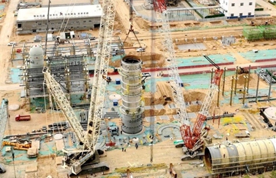 五一國(guó)際勞動(dòng)節(jié)前夕,由北京石油化工工程有限公司EPC總承包的陜西延長(zhǎng)石油榆林凱越煤化有限責(zé)任公司50萬(wàn)噸/年甲醇制乙醇項(xiàng)目核心設(shè)備——預(yù)分離塔第三段順利完成吊裝,標(biāo)志著該項(xiàng)目首臺(tái)分段式吊裝塔器成功封頂,為后續(xù)工程建設(shè)奠定了堅(jiān)實(shí)基礎(chǔ)。
