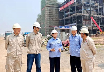 5月16日,北京石油化工工程有限公司黨委副書記、總經理田偉帶隊到公司總承包的東明烯烴新材項目調研督導項目建設,公司總經理助理張文立及項目相關負責人陪同調研。