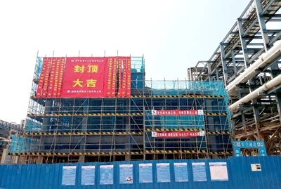 北油工程總承包福建福海創(chuàng)騰龍芳烴技改項目變電所主體結構封頂