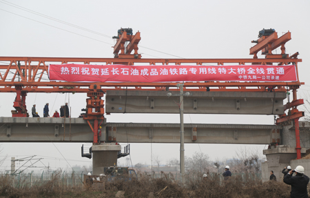延長(zhǎng)石油西安成品油鐵路專用線特大橋全線貫通