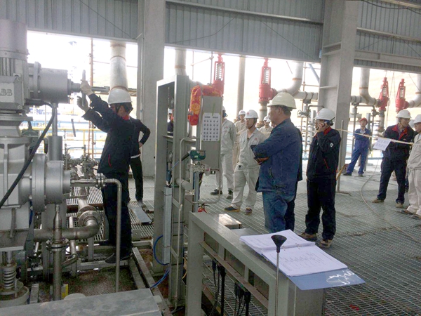為順利完成兩臺壓縮機負荷試車,項目組抽調技術骨干,配合業(yè)主對界區(qū)介質(中壓蒸汽、氮氣、儀表風、循環(huán)水等)運行參數(shù)、提前啟動汽輪機暖機、防喘振系統(tǒng)調試及模擬測試、一二三級系統(tǒng)管支架、儀表運行及參數(shù)等環(huán)節(jié)逐一進行了核查。在完成機組、系統(tǒng)、安全等相應手續(xù)簽字后,下午16時35分,丙烯制冷壓縮機組開始負荷試車,經過3個小時的平穩(wěn)運行后,中控顯示系統(tǒng)溫度、壓力、機組振動值均在正常運行范圍內。隨后,試車團隊又開始乙烯制冷壓縮機機組的負荷試車。晚上22時10分,該設備運行平穩(wěn),各項參數(shù)運行數(shù)據正常,試車一次成功。至此,ACO裝置同日完成了兩臺壓縮機試車任務。